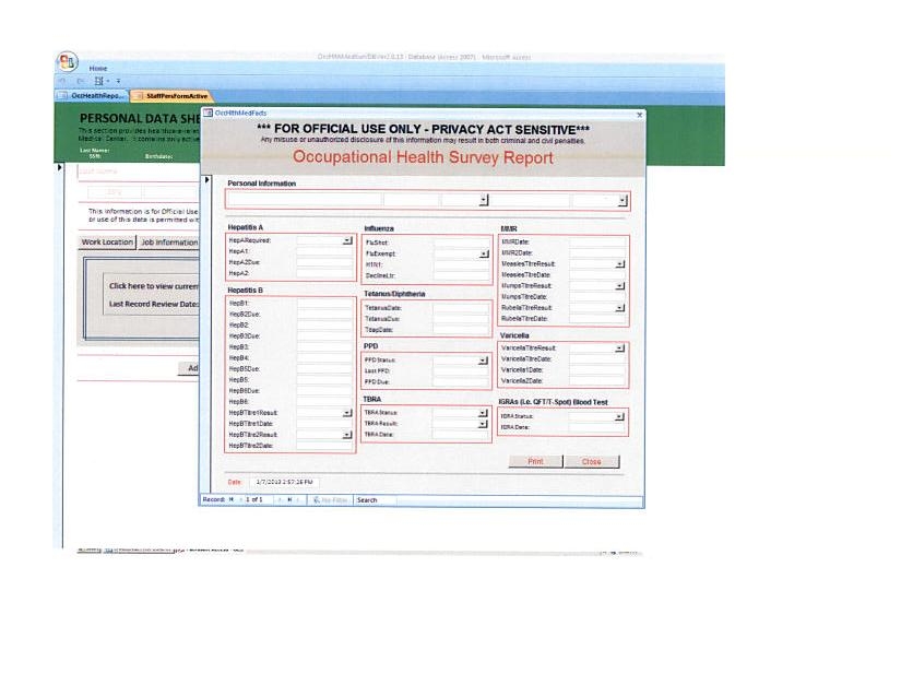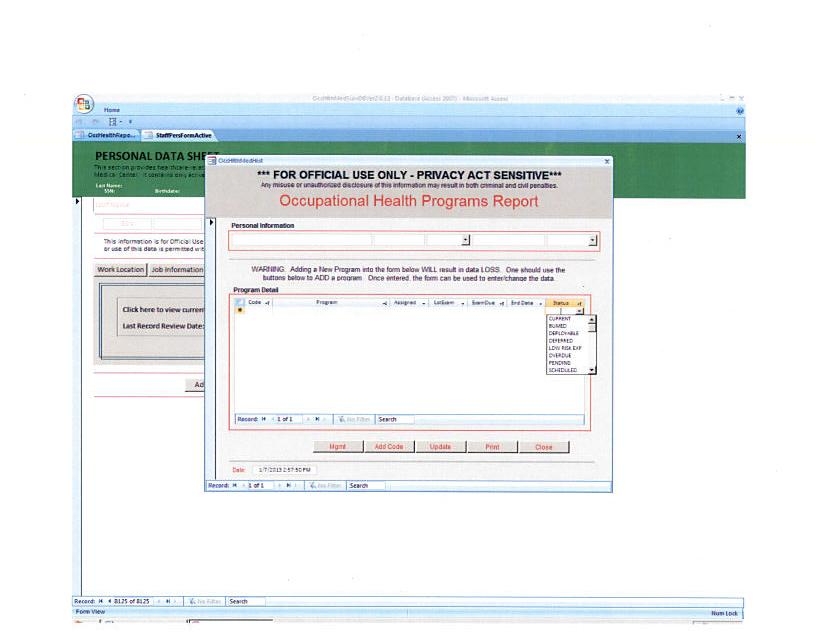 This proposal presents a small database which has proven itself in over six years of use in an Occupational Health clinic at a large military medical facility to track membership and compliance in medical surveillance programs for both active duty and civilian employees. It requires further development to meet its potential. Due to the current level of development, a pilot project can be done very inexpensively and with minimal personnel support.