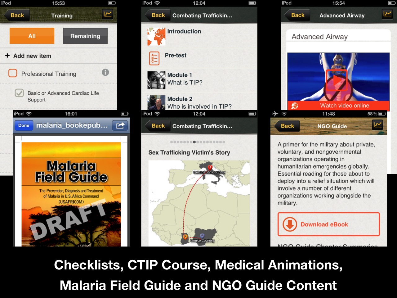 Training is critical to the success of a broad spectrum of military operations both in-garrison and during deployed operations. Increasingly common is the requirement for medical support to deployed operations such as counter-insurgency (COIN), humanitarian assistance and disaster relief (HA/DR) and other stability operations. However, as Combatant Commanders attempt to tailor trainings immediate and strategic long-term roles to their area of responsibility and requirements, they find current training methodologies, and related technologies, are not well-suited for addressing their needs. This gap is limiting their ability to meet the global learning needs of today’s US and Coalition forces operating overseas. The broad and rapidly changing field of medical support to non-combat operations offers an ideal use case for optimizing m-Learning and productivity tool development.