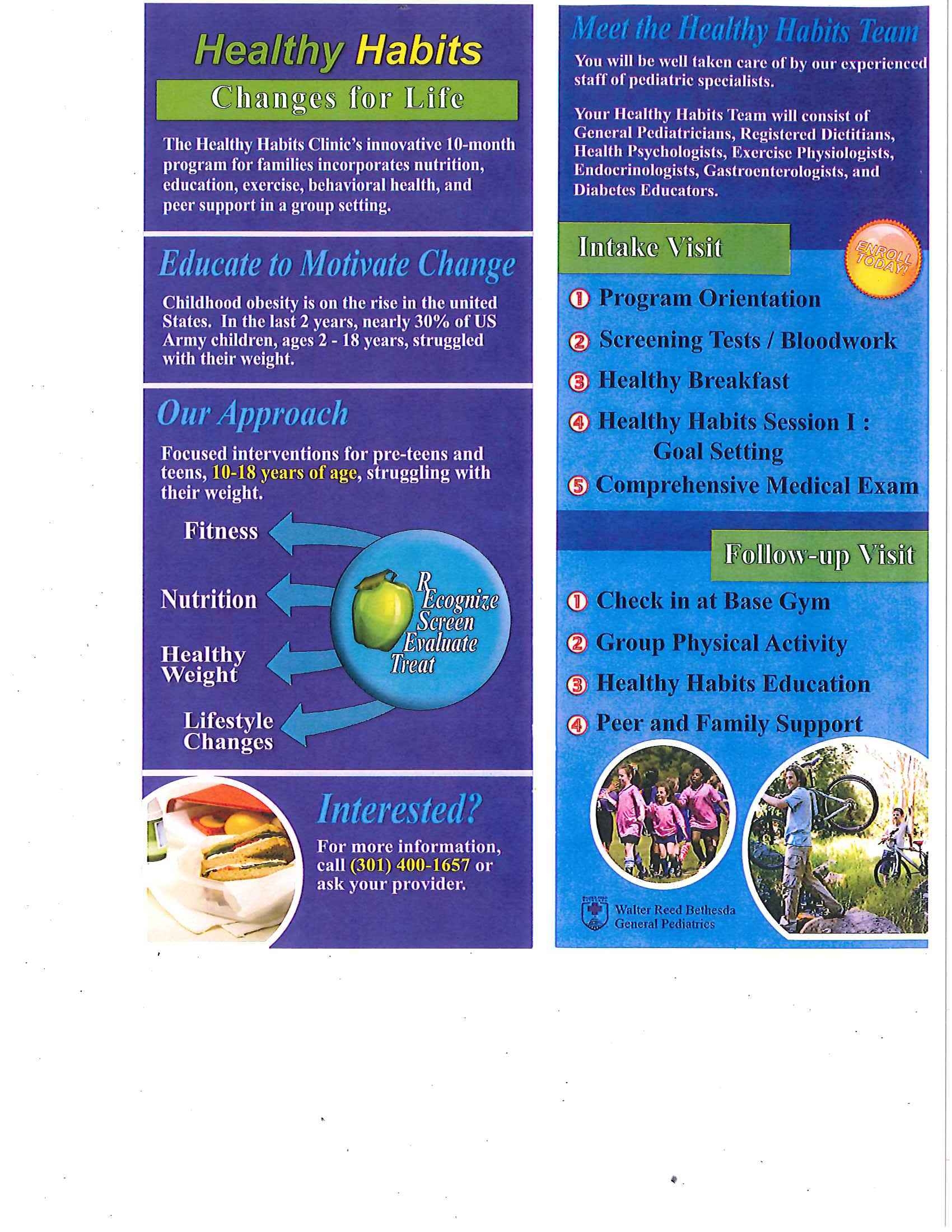 The Healthy Habits clinic model has embraced evidence-based approaches to obesity management outside of the current clinical practice paradigm. We have started to see improvements in the diagnosis and evaluation of obesity, and look forward to continued success and positive change in the health of our patient population, future military recruits, and, over time, the armed forces as a whole. We continue to forge innovation and change in a population that can benefit from it the most—our children!
