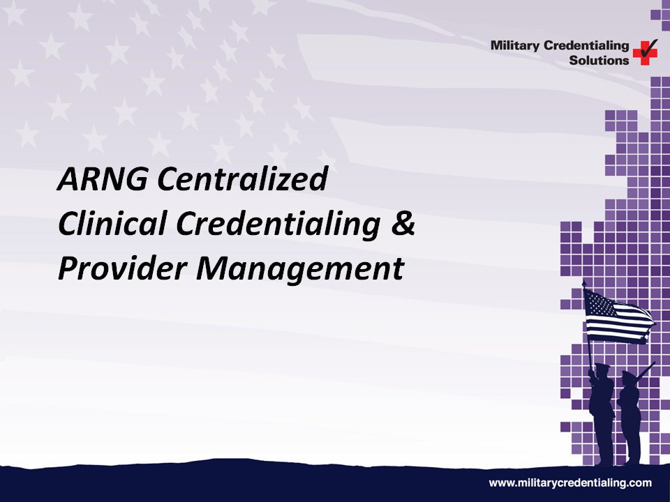 ARNG Centralized Clinical Credentialing & Provider Management