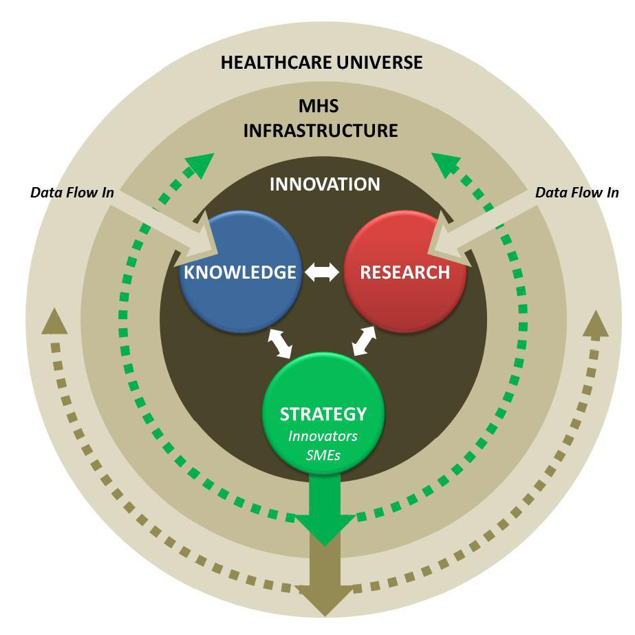Innovation promotes achievements in spite of its challenges. Successful innovation must include, among many factors, the ability: 1) for interactive discussions and collaborations; 2) to readily access data and share knowledge; 3) to think and explore beyond established constraints; 4) to accomplish rapid decision-making; and, 5) to utilize all available tools to create, implement, and evaluate innovative decisions, outcomes, and results. Innovation outcomes will inform long range planning for optimum impact to the full lifecycle of MHS facilities.