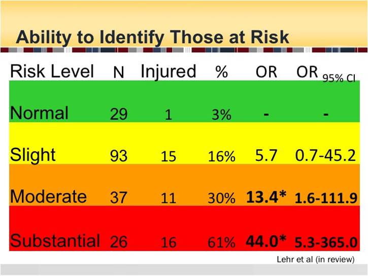 Great study showing the validity of injury prediction - At the point of this is not just the over 500 million spent on injuries but the enhancement of quality of life as well.