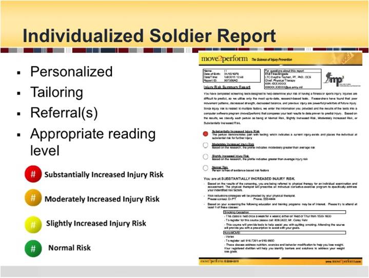 Outstanding tool. Opens up avenues for prevention of injury and correction of deficits that can be more focused and individualized, which will likely make it more meaningful to the Soldier.